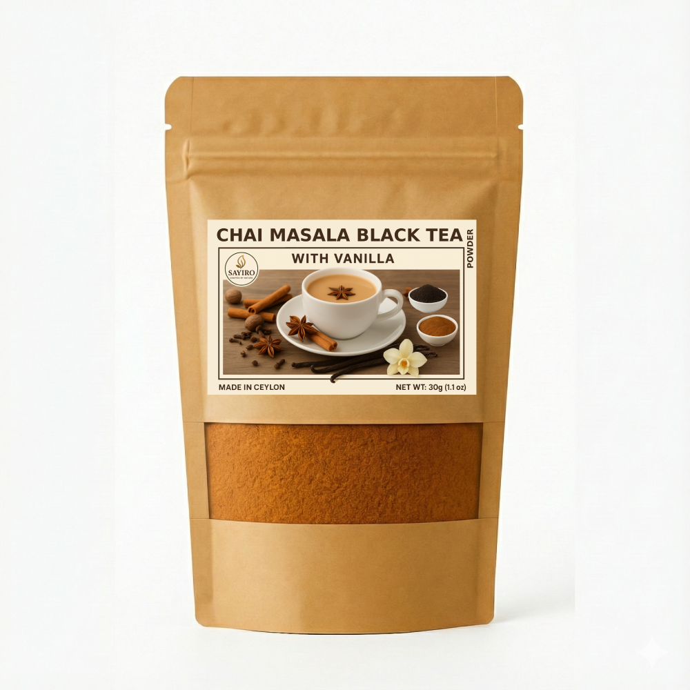 Enjoy the bold taste of premium Ceylon black tea perfectly blended with traditional masala spices, natural vanilla, and aromatic ingredients. This Chai Masala Black Tea – Vanilla Mixed delivers a rich, flavorful cup with the perfect balance of strength, spice, and smooth sweetness.