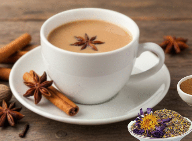 Chai Masala Lily Tea – Vanilla Mixed is a soothing herbal blend made with lily petals, warm masala spices, and natural vanilla. It delivers a gentle floral aroma, mild sweetness, and comforting chai flavor without caffeine. Ideal for relaxing moments, evening tea, or a smooth herbal latte.