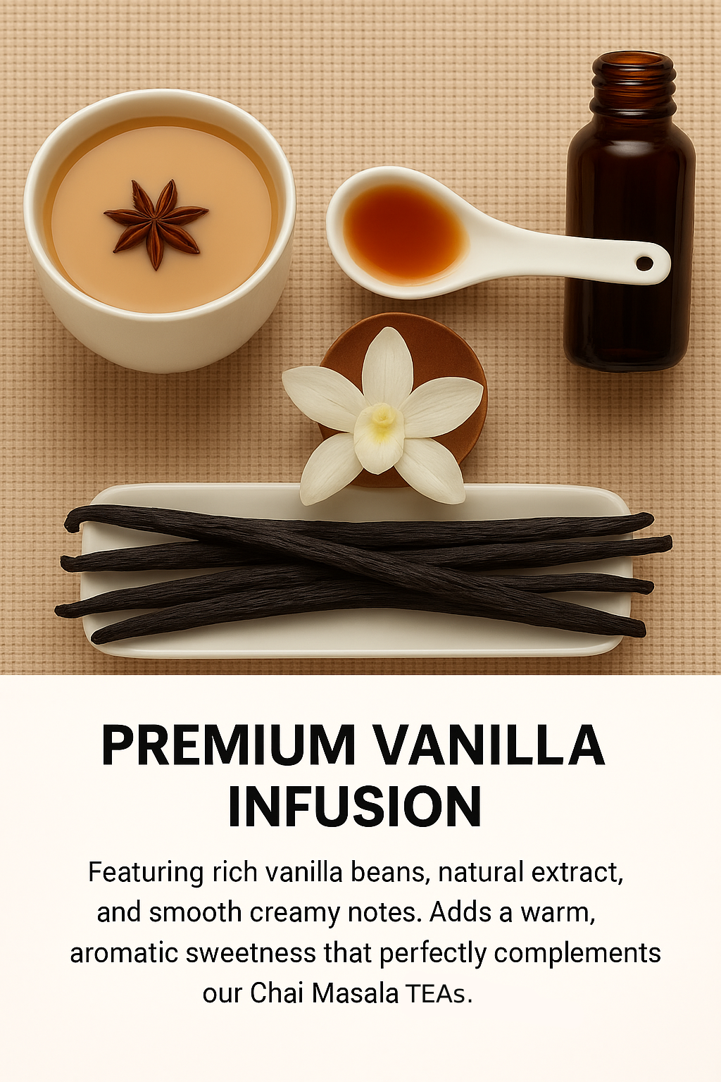 Chai Masala Lily Tea – Vanilla Mixed is a soothing herbal blend made with lily petals, warm masala spices, and natural vanilla. It delivers a gentle floral aroma, mild sweetness, and comforting chai flavor without caffeine. Ideal for relaxing moments, evening tea, or a smooth herbal latte.