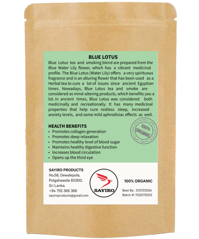 Blue Water Lily tea and smoking blend is prepared from the blue water lily flower, which has a vibrant medicinal profile. The Blue Water Lily offers a very spirituous fragrance and is an alluring flower that has been used as an Herbal tea to cure a lot of issues since ancient Egyptian times. Nowadays, Blue Water Lily Tea and smoke are considered as mind-altering products, which benefits you a lot. In ancient times, Blue Water Lily was considered both medicinally and recreationally. It has many medicinal properties that help cure restless sleep, increased anxiety levels, and some mild aphrodisiac effects as well.